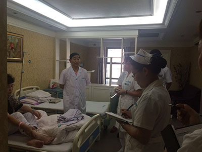 查房的过程中,患者反映在我院住院像住五星级酒店,服务好,环境好,称只要一按铃,护士就跑进房,不是走进来!广州南粤医院竭诚为广大患者提供一个服务更好、质量更高、看病更方便、更便捷的医疗场所。谭院长亲自带队查房更是让住院的患者及家属们感到了家一般的温暖,受到了广大患者的一致好评!