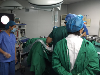 广州南粤医院手术室医护人员为取断筷做术前准备