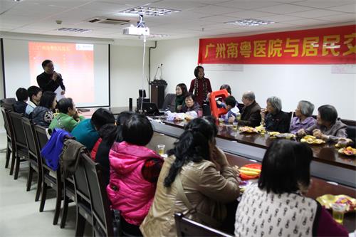 交流会的开始,广州南粤医院谭华霖院长代表医院全体医务人员对参会的居民代表们表示衷心感谢。他强调,病人是医院的服务对象,构建和谐医疗环境,提高病人的满意度是医院永远的追求。同时强调,把医疗带进社区,是广州南粤医院义工服务队长期坚持的理念,其目的就是要让社区的居民们少跑路、少花钱,医院亲自把医师和体检送进社区,开展免费的义诊、健康咨询、血压检测、血糖检测,举办社区健康讲座等。希望交流会上居民们畅所欲言,给广州南粤医院的医疗服务提出宝贵意见。