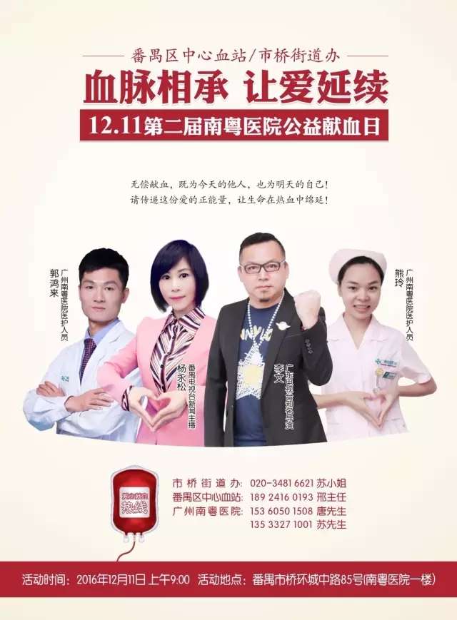 据了解,这次由番禺区中心血站和市桥街道办主办、广州南粤医院承办的第二届公益献血活动,通过在辖区范围内广泛宣传、积极引导,群众逐渐树立“献血光荣,无偿献血有益健康”的正确观念,形成了积极参加献血的良好风尚。今后将以此为契机,继续开展更多献血知识宣传活动,让公益献血理念走入千家万户。